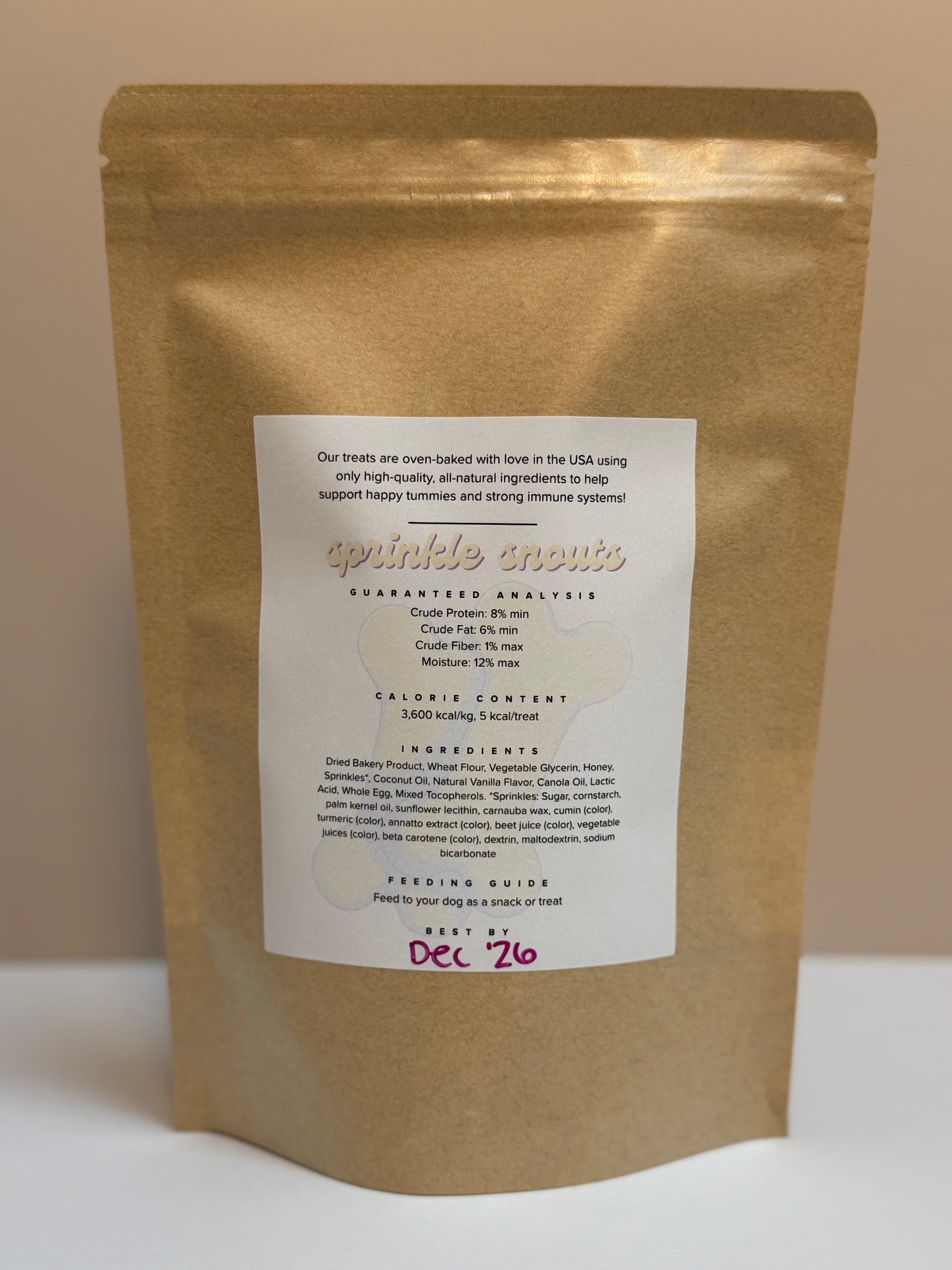 🩷 Ingredients: Dried Bakery Product, Wheat Flour, Vegetable Glycerin, Honey, Sprinkles*, Coconut Oil, Natural Vanilla Flavor, Canola Oil, Lactic Acid, Whole Egg, Mixed Tocopherols.